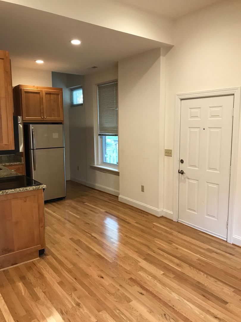 --APPLICATION PENDING -- Renovated townhouse style apartment in the Historic Fan District. Huge bedroom with a large balcony. Living room with a large exterior porch. Brand new high efficiency gas heat and central air. Rent includes Water, Sewer, and Trash. Convenient to stores & restaurants. One off-street parking space. Additional parking available at additional expense. No animals allowed. Shared Coin Operated Laundry Center.