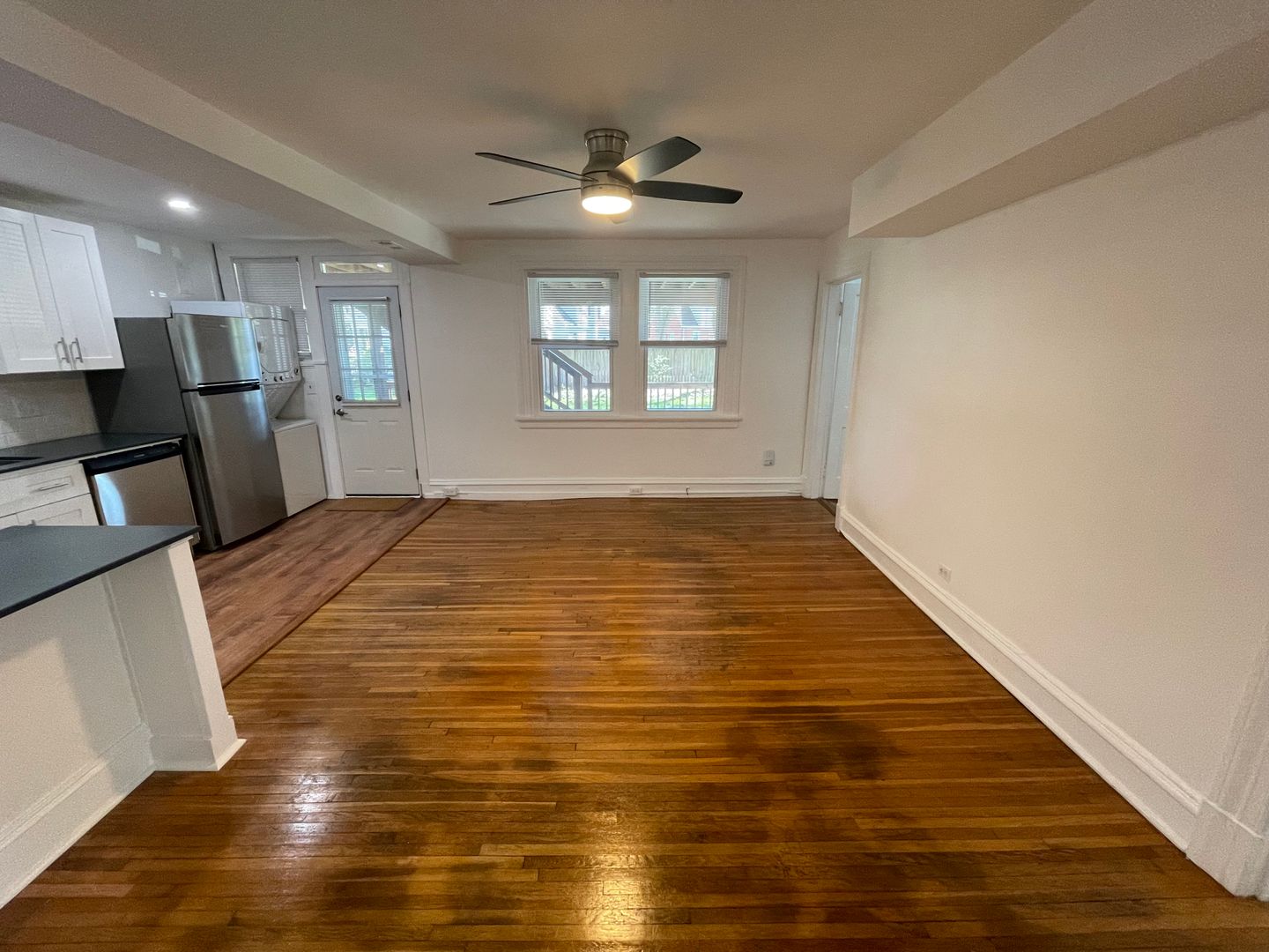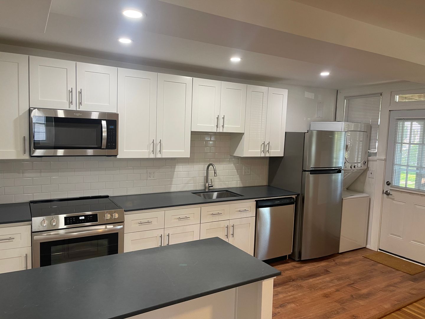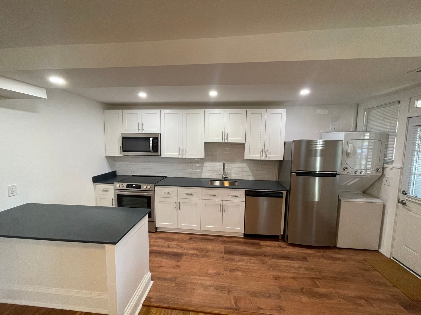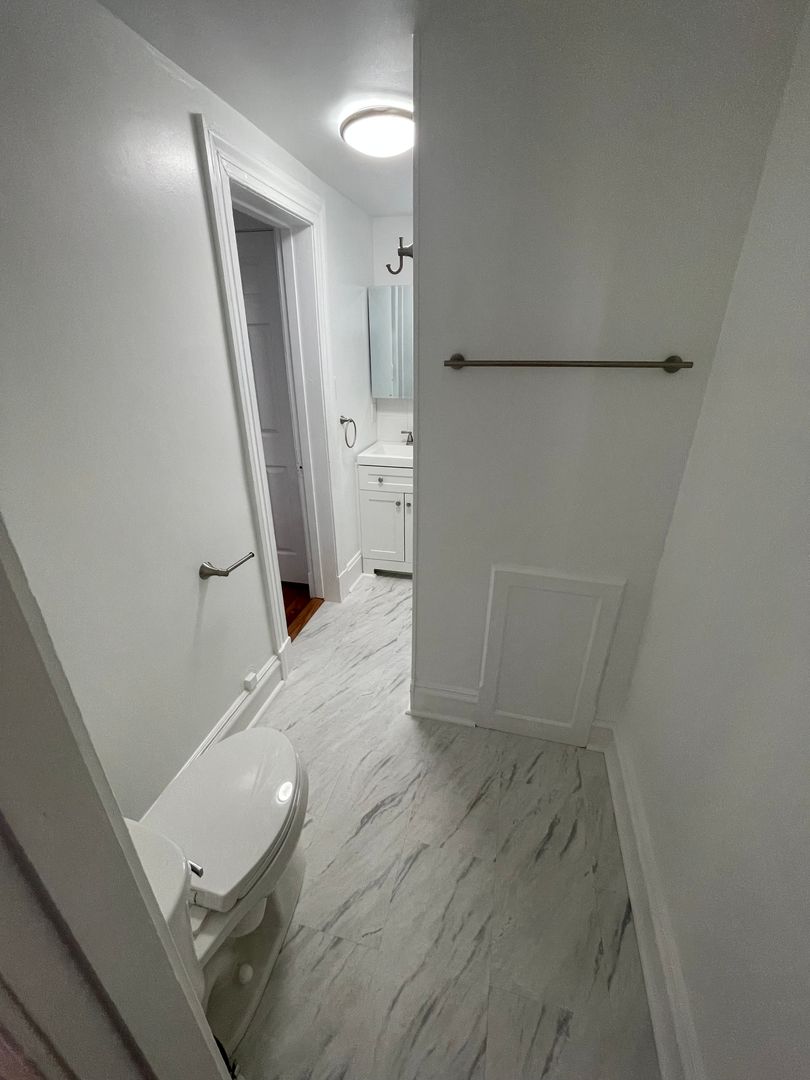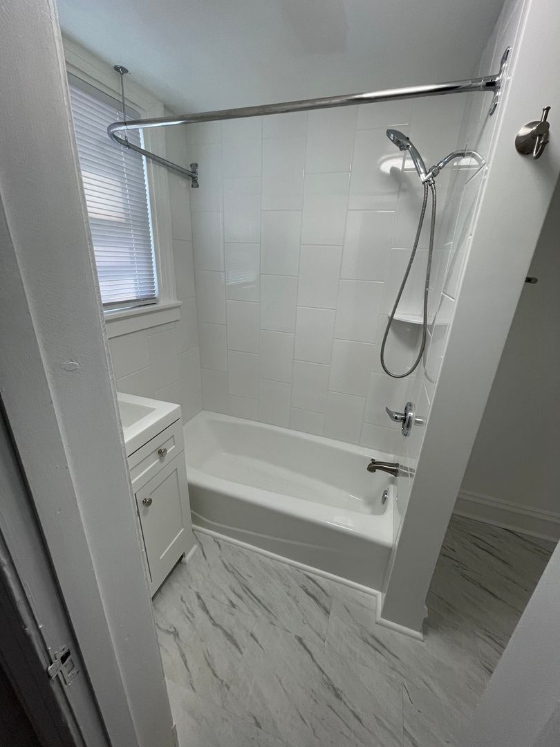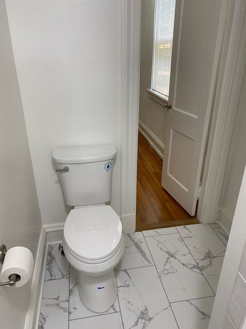 -- AVAILABLE JULY 10TH -- Exceptional, freshly renovated two bedroom apartment. First floor rear apartment. The unit has hardwood flooring and central air. There is a small patio area off the rear. There is a galley kitchen that opens up to the living area with a stone counter tops, range, refrigerator, dishwasher, disposal, and microwave vent hood. A large island with storage separates the kitchen from the living area. There is off street parking. The rental rate includes the water, sewer, and trash. Washer and dryer in unit. One cat is permitted with an animal deposit and an animal fee. Sorry, no dogs are allowed.