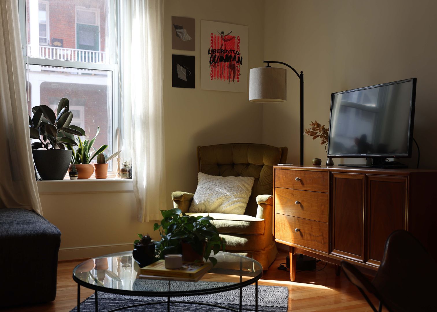 Living room and the kitchen are on the first level. First level has hardwood floors throughout. The bedrooms along with the bathroom are on the second level. The bedrooms are carpeted. No neighbors above you or below you!