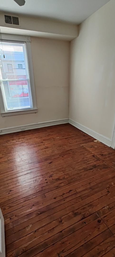Downstairs end unit with lots of natural light. Hardwood floors in bedrooms and new Luxury vinyl in common areas. Open living/kitchen area and spacious bedrooms. Front stoop. Convenient to Carytown and Main Street restaurants. Short drive to VCU. One off-street parking space. Gas used for heat, cooking, & hot water. Water, sewer, & trash included in rent. No pets, no laundry. must see video tour for updated condition.